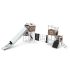 - Piattaforme e pareti per l’arrampicata realizzate in resistente lamiera HPL antiscivolo e impermeabile,