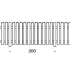 Due correnti orizzontali sezione mm 45 x 90 con lunghezza cm 200, stecche verticali con testa arrotondata e dimensioni 27 x 140 mm, altezza cm 90, fissate per mezzo di viteria in acciaio zincato.
