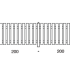 Due correnti orizzontali sezione 45 x 90 mm con lunghezza cm 200, stecche verticali di dimensioni 27 x 140 mm ed altezza cm 90, fissate per mezzo di viteria in acciaio zincato.