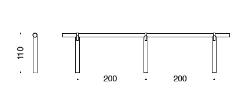 Piantoni verticali in tondello cilindrico diametro cm 12 con sella per l’appoggio del corrimano, altezza fuori terra cm 110, interasse cm 200.
