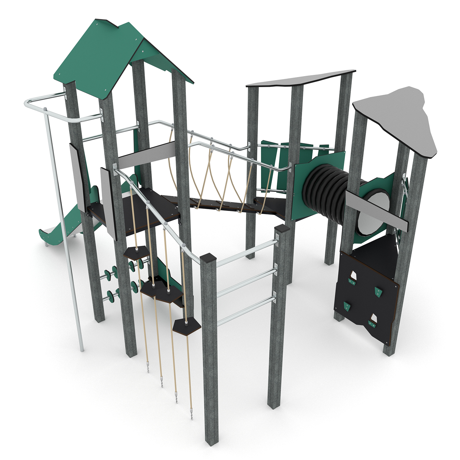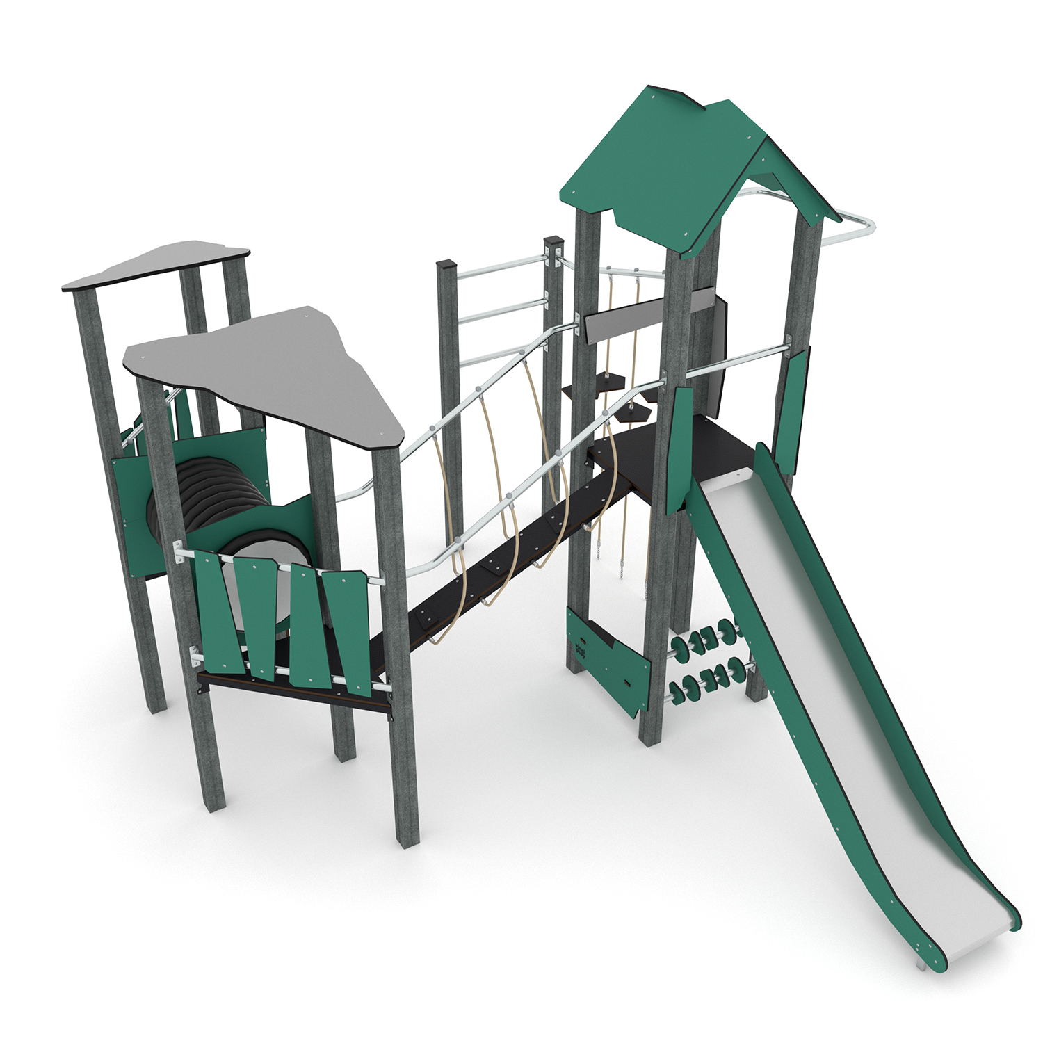 • Pannelli manipolativi fatti di HDPE riciclato, resistenti alle condizioni atmosferiche, con pannelli verdi in HDPE realizzati al 100% da materiali riciclati, come rifiuti oceanici quali reti da pesca e corde.