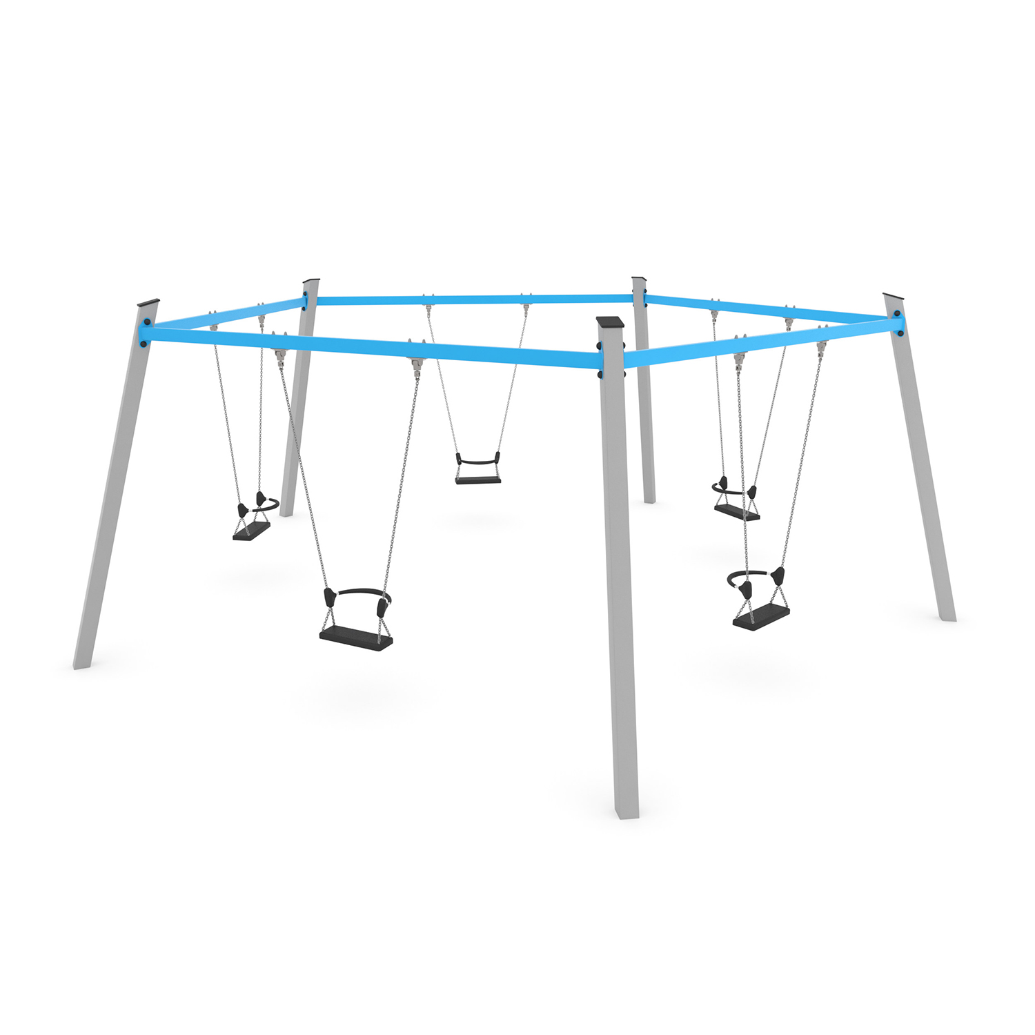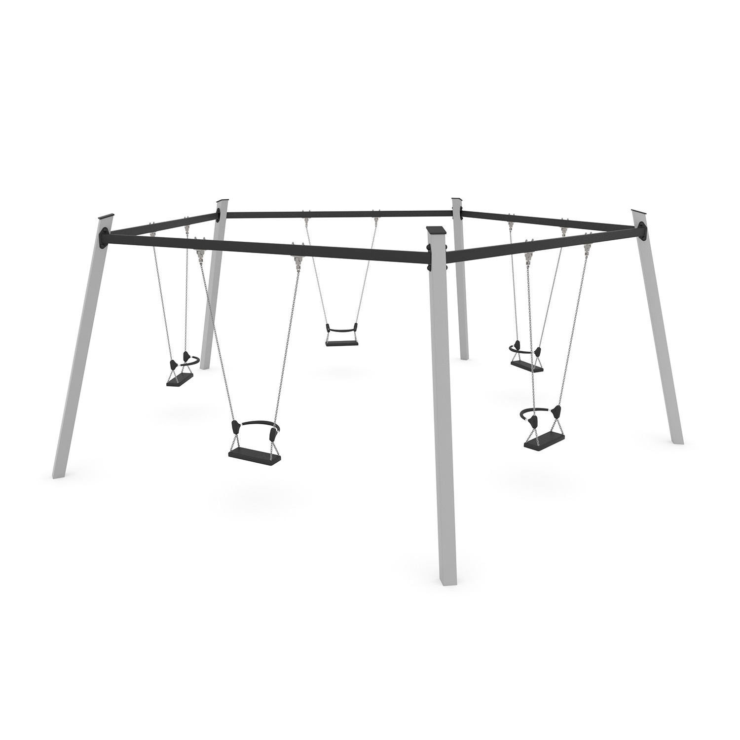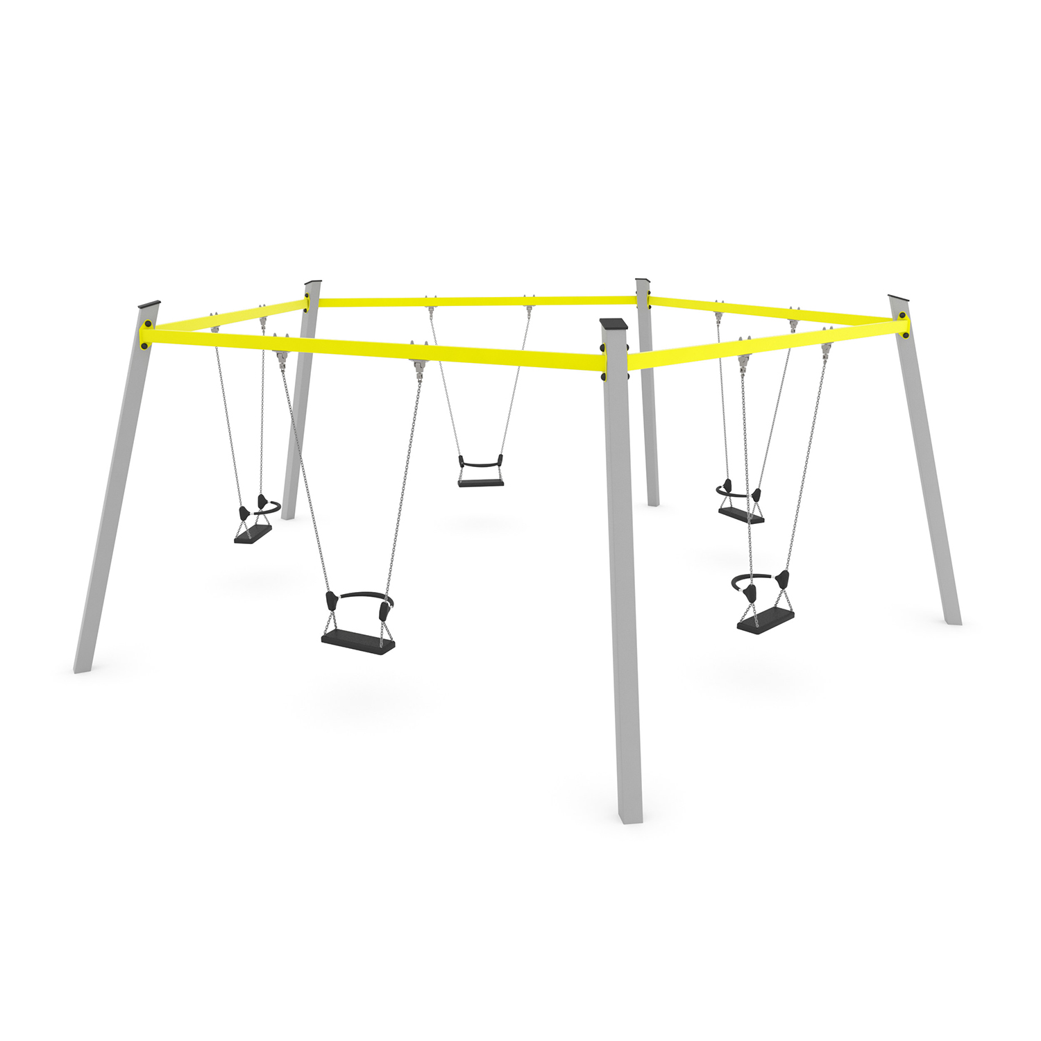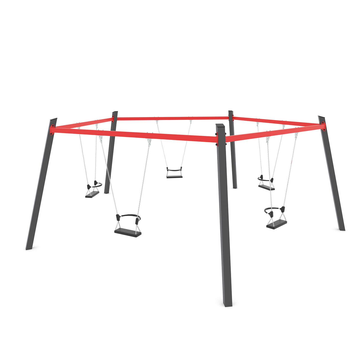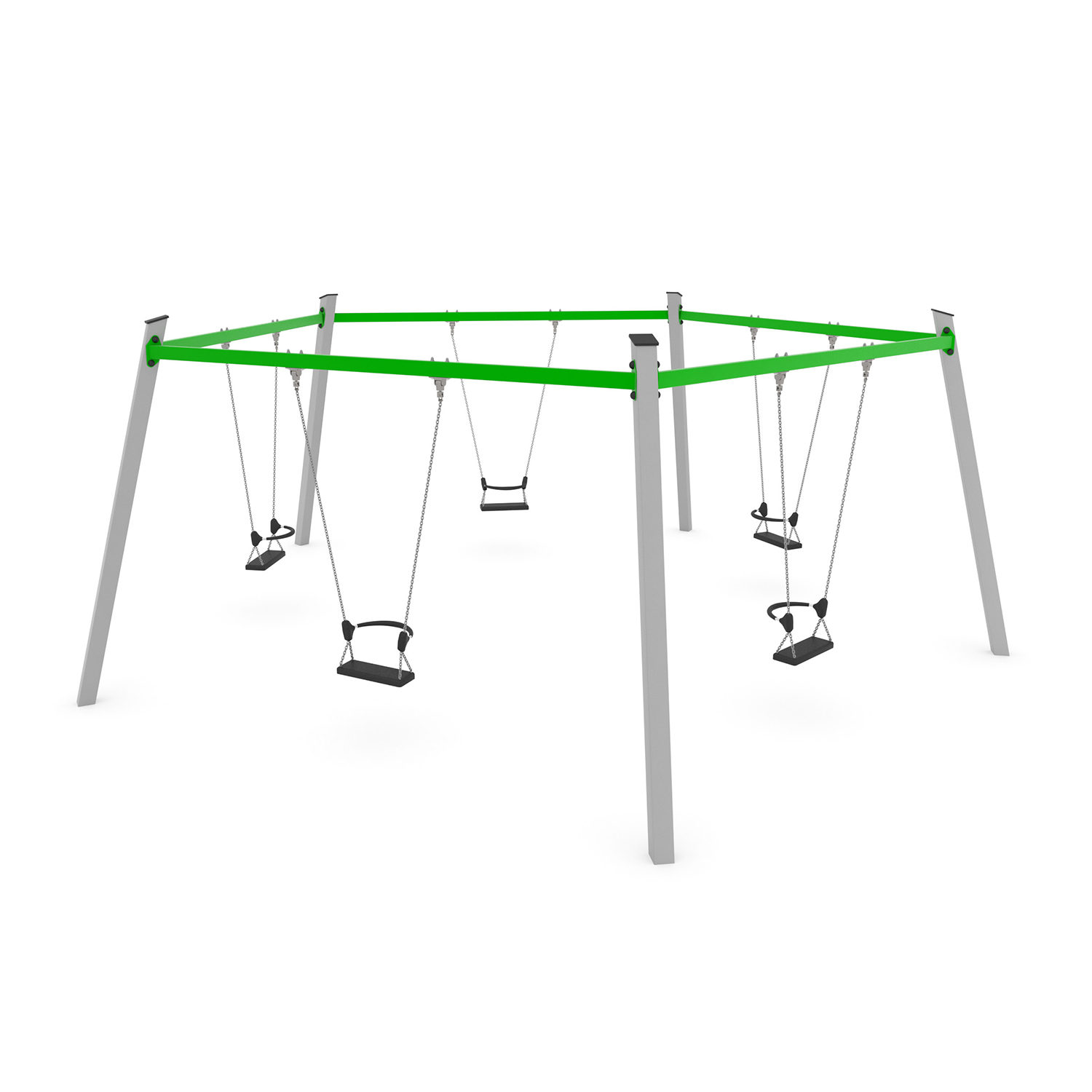 La serie SWING include attrezzature classiche amate sia dai bambini più piccoli che da quelli più grandi. Altalene singole colorate, altalene a dondolo, altalene multiple con sedili a nido d’uccello e altalene multiple bilanciate offrono un piacevole brivido ai bambini e li incoraggiano a giocare con i loro amici. Il movimento ritmico dell’altalena è un efficace esercizio di equilibrio del corpo che ha un effetto positivo sullo sviluppo del sistema muscolare e mentale.