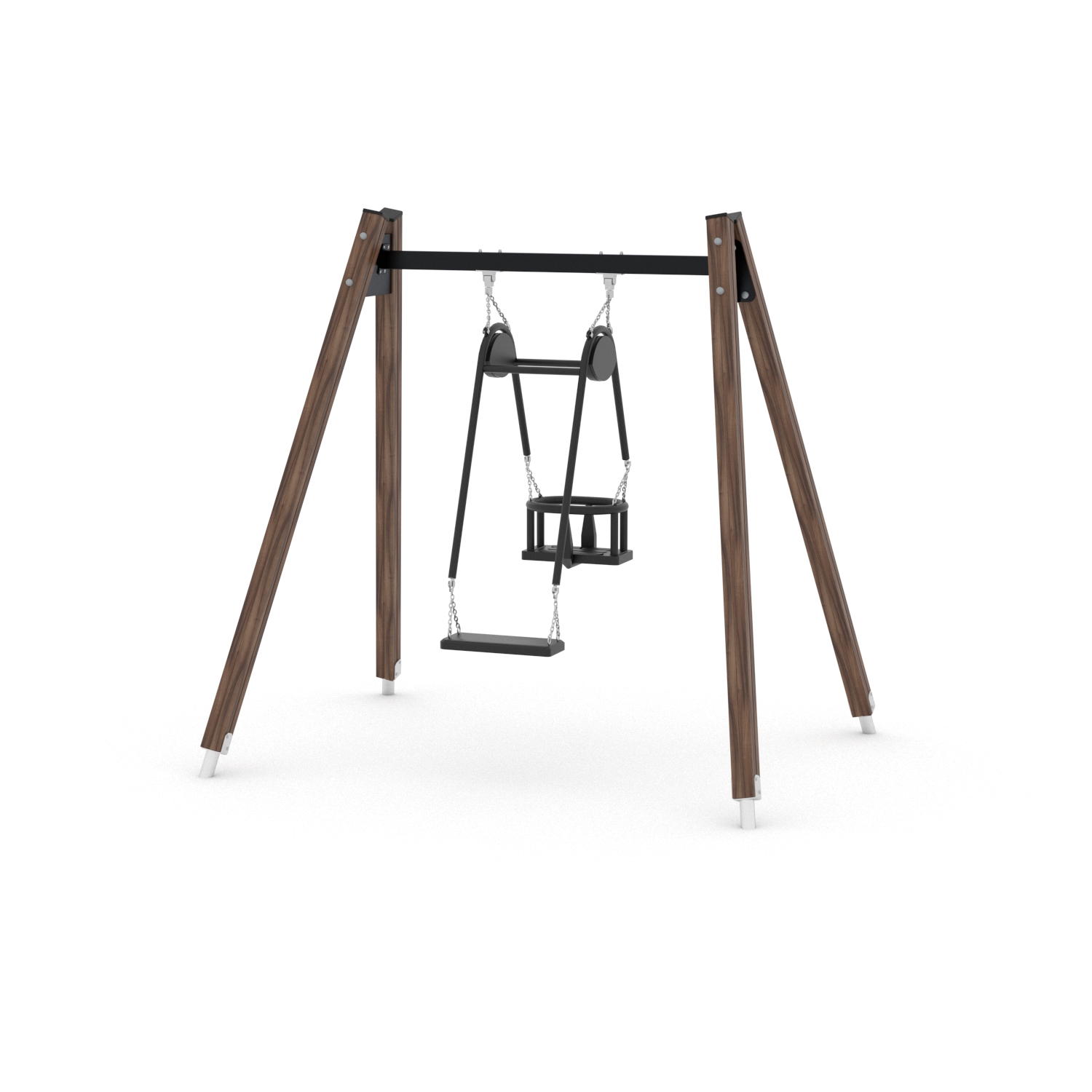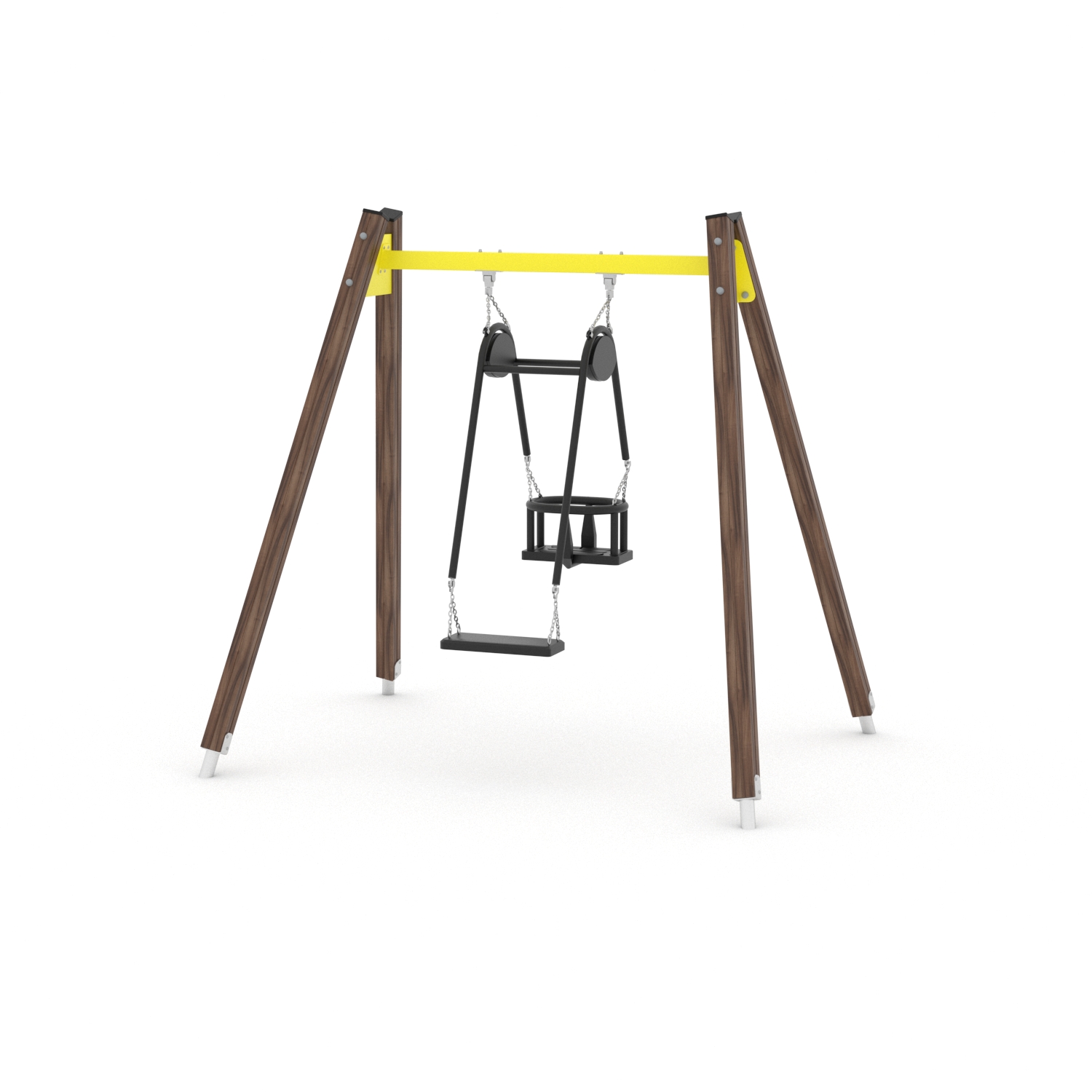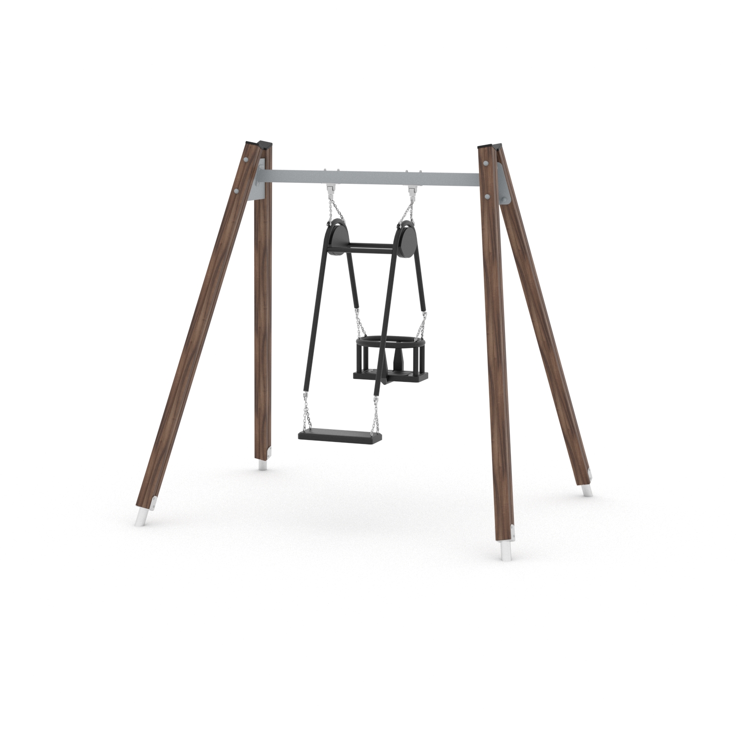 La serie SWING include attrezzature classiche amate sia dai bambini più piccoli che da quelli più grandi. Altalene singole colorate, altalene a dondolo, altalene multiple con sedili a nido d’uccello e altalene multiple bilanciate offrono un piacevole brivido ai bambini e li incoraggiano a giocare con i loro amici. Il movimento ritmico dell’altalena è un efficace esercizio di equilibrio del corpo che ha un effetto positivo sullo sviluppo del sistema muscolare e mentale.
